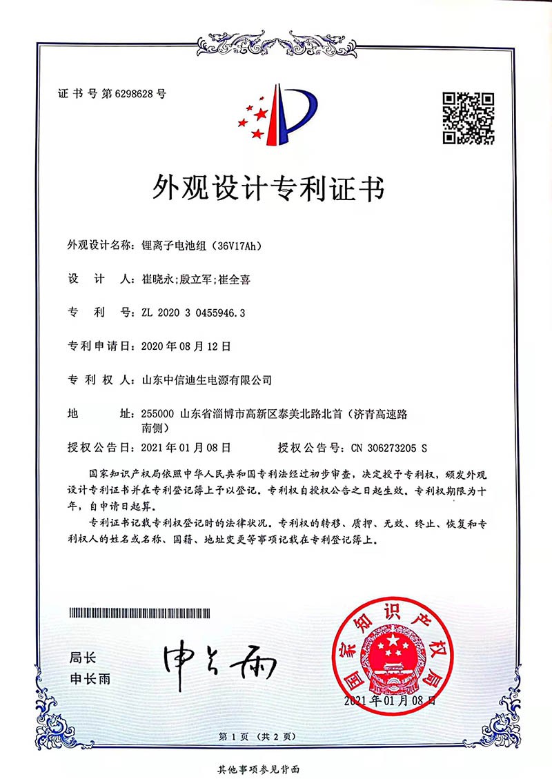 外觀設(shè)計(jì)專利證書